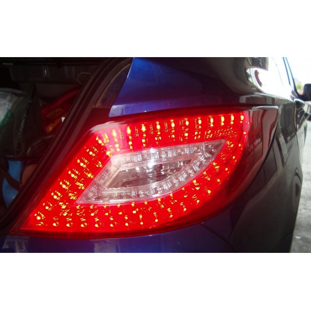 Альтернативная оптика для Хендэ Солярис со светодиодными указателями поворотов,габаритными огнями и стоп-сигналом.