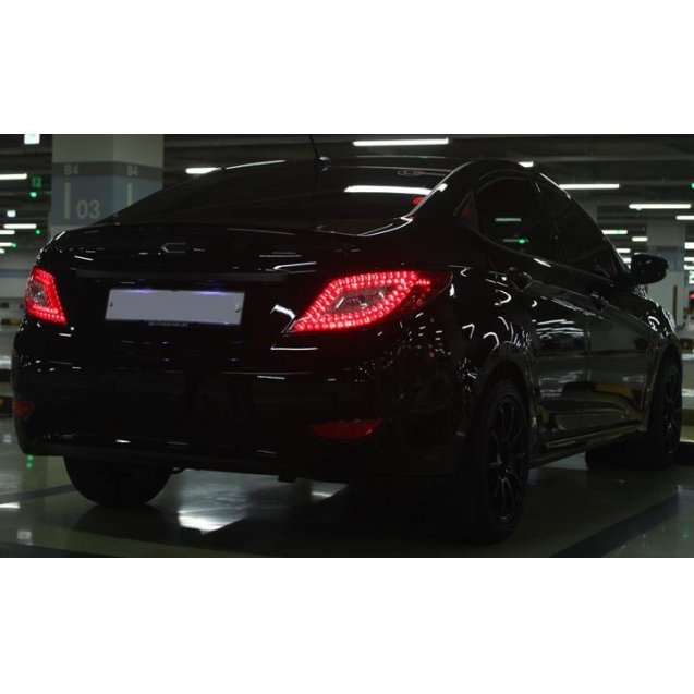 Альтернативная задняя светодиодная LED оптика для Hyundai Solaris ( Accent RB) красная. Установка в штатные разъемы. Купить задние светодиодные фонари для Hyundai Solaris с доставкой . Доставка в любой город - почтой. Исполнение задних фонарей Hyundai Solaris для кузова седан.