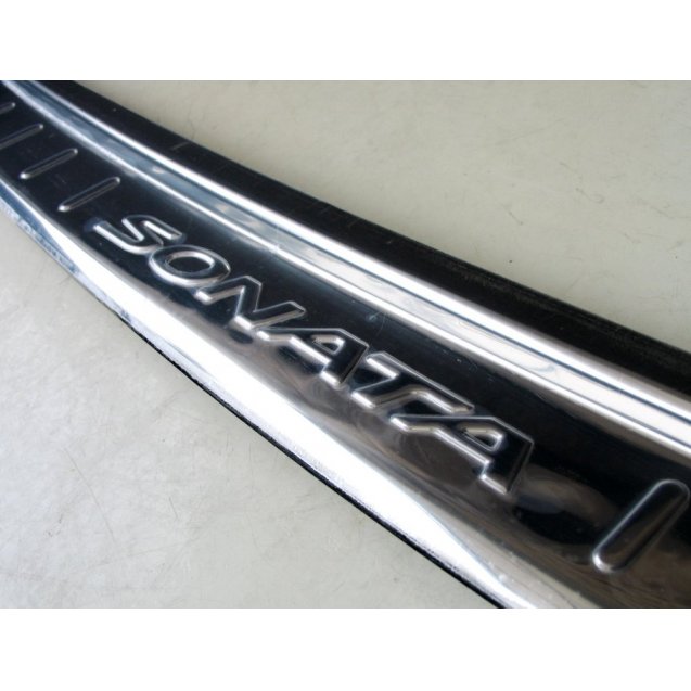 - Установка защитной накладки на задний бампер производится при помощи двухстороннего скотча. Защитная накладка на задний бампер для автомобиля Hyundai Sonata LF 2015+ позволит предотвратить или скрыть уже ранее полученные мелкие косметические повреждения лако-красочной поверхности заднего бампера при погрузке-выгрузке грузов.