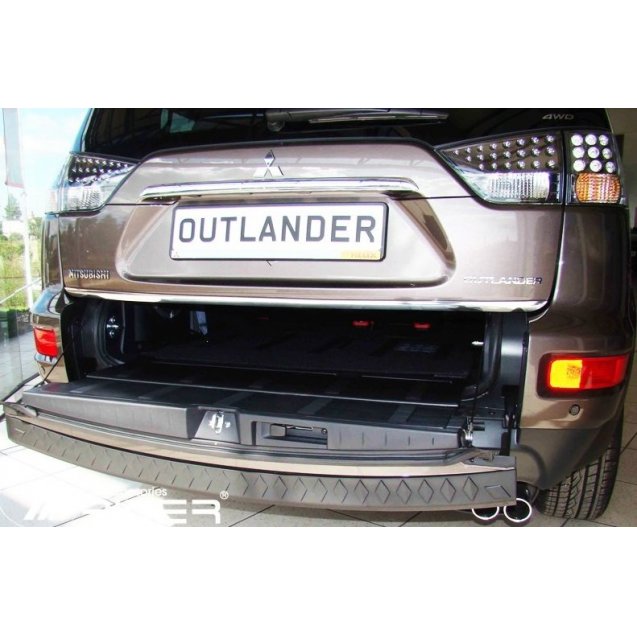 Защитная накладка на задний бампер для автомобиля Mitsubishi Outlander XL 2006+. Материал- полиуретан. Установка защитной накладки на задний бампер производится при помощи двухстороннего скотча. Защитная накладка на задний бампер для автомобиля Mitsubishi Outlander XL 2006+ позволит предотвратить или скрыть уже ранее полученные мелкие косметические повреждения лако-красочной поверхности заднего бампера при погрузке-выгрузке грузов. Купить защитную накладку на задний бампер для автомобиля Mitsubishi Outlander XL 2006+ возможно онлайн, по телефону или по электронной почте. Заказать защитную накладку на задний бампер для автомобиля Mitsubishi Outlander XL 2006+ можно с доставкой по Украине транспортными компаниями Новая Почта, Интайм, Деливери, Автолюс,Гюнсел. Доставка в другие страны мира включая Россию, Беларусь, Молдову, Казахстан защитной накладки на задний бампер для автомобиля Mitsubishi Outlander XL 2006+ производится почтой . Оплата возможна как при получении товара в пределах Украины,так и с предоплатой на карточку банка Приватбанк или Кредит Днипро. Оплаты за защитную накладку для Mitsubishi Outlander XL 2006+ из других стран возможна при помощи переводов Золотая Корона или Paypal ТОЛЬКО перед отправкой товара заказчику.