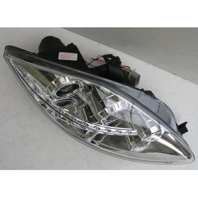 Передняя альтернативная тюнинг галогеновая оптика для Seat Leon 2. Место для установки моторчика для корректора света фар. Линза ближнего света, Цоколь ламп Н1/Н1. Светодиодная летна габаритных огней и указателей поворота.Исполнение хром.