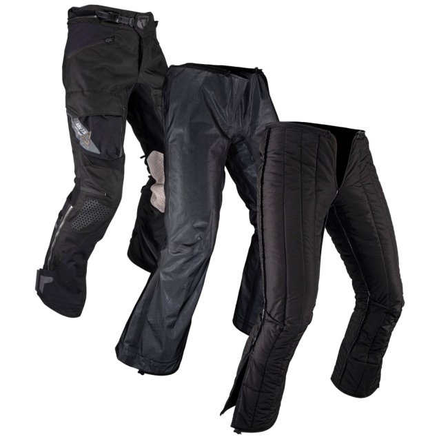 Мотоштани ADV MultiTour 7.5 — універсальні всесезонні штани для тривалих подорожей у мінливу погоду з сертифікатом EN 17092-3-2020, клас AA. Знімний водонепроникний вкладиш HydraDri EVO (30 000 мм / 30 000 г/м²) та знімний термовкладиш дозволяють адаптувати штани під умови їзди. Захист стегон і колін 3DF CE рівень 2, наколінники регулюються по висоті на 5 см. Основна оболонка Leatt RipStop посилена матеріалом Superfabric у критичних зонах. Шкіра на внутрішній частині колін підвищує зчеплення та зносостійкість. Вентиляція через блискавки спереду та ззаду на ногах. Великі водонепроникні кишені на стегнах та кишені для рук із блискавками. Штани з'єднуються з курткою через довгу стикувальну блискавку. Регулювання пояса, литки та гомілки для оптимальної посадки. Знімні підтяжки в комплекті. Світловідбивні елементи для безпеки в темряві. Доступні в короткій довжині ноги.