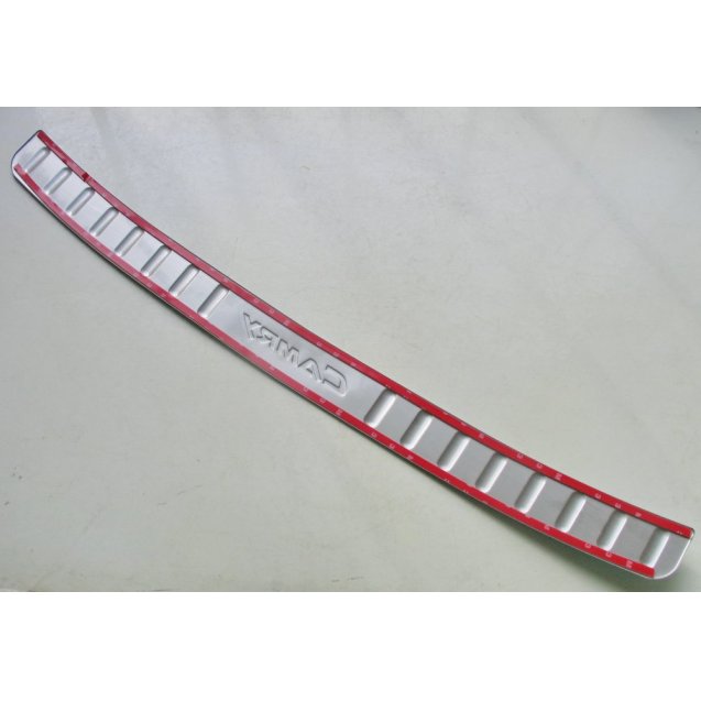 Защитная накладка на задний бампер для автомобиля Toyota Camry V50 2012. Материал- нержавеющая сталь. Установка защитной накладки на задний бампер производится при помощи двухстороннего скотча. Защитная накладка на задний бампер для автомобиля Toyota Camry V50 2012 позволит предотвратить или скрыть уже ранее полученные мелкие косметические повреждения лако-красочной поверхности заднего бампера при погрузке-выгрузке грузов. Купить защитную накладку на задний бампер для автомобиля Toyota Camry V50 2012 возможно онлайн, по телефону или по электронной почте. Заказать защитную накладку на задний бампер для автомобиля Toyota Camry V50 2012 можно с доставкой по Украине транспортными компаниями Новая Почта, Интайм, Деливери, Автолюс,Гюнсел. Доставка в другие страны мира включая Россию, Беларусь, Молдову, Казахстан защитной накладки на задний бампер для автомобиля Toyota Camry V50 2012 производится почтой . Оплата возможна как при получении товара в пределах Украины,так и с предоплатой на карточку банка Приватбанк или Кредит Днипро. Оплаты за защитную накладку для Toyota Camry V50 2012 из других стран возможна при помощи переводов Золотая Корона или Paypal ТОЛЬКО перед отправкой товара заказчику.