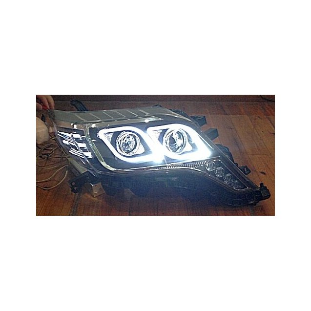 Передняя альтернативная оптика для Toyota Land Criser Prado 150 после рестайлинга . Линзы с ксеноновой шторкой. Светодиодные габаритные огни и подстветка окантовок в стиле "ангельские глазки". Установка альтернативной оптики для Toyota Land Criser Prado 150 в штатные места. Новинка 2014. Купить альтернативную оптику для Toyota Land Criser Prado 150 после рестайлинга с доставкой в любой город России, Молдовы,Казахстана, Белоруси можно почтой.