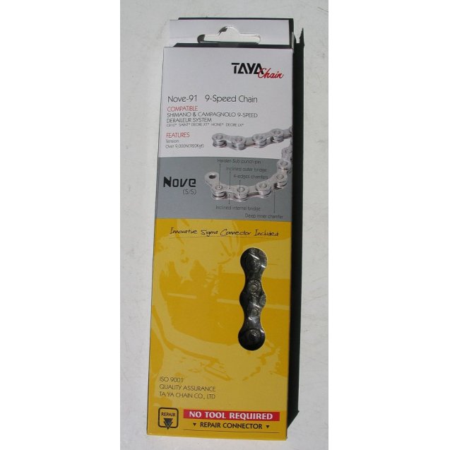 Велосипедная цепь TAYA Nove-91 (S/S) Цепь совместима с МТВ и ROAD компонентами Shimano/ Campagnolo на 9 cкоростей, имеет: