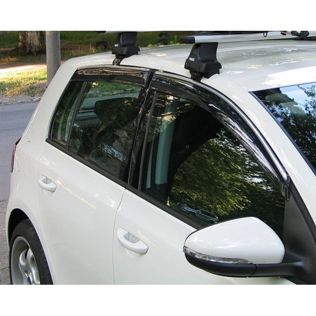 Ветровики дефлекторы дверей ASP с хромированным молдингом для Volkswagen Golf VI . Комплект на 4 двери. Монтаж ветровиков ASP для Volkswagen Golf 6 производится на двухсторонний скточ 3М. Перед установкой необходимо обезжирить поверхность двери . Монтаж производить в сухом теплом помещении. Хромированный молдинг придаст более элегантный вид. После установки ветровиков дверей не рекомендуется мыть автомобиль в течении суток.